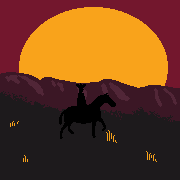 A lone rider travels under the last light of the sun. With endless land ahead, continues into the unknown.